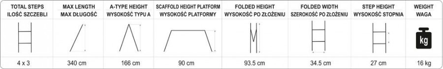 - malířské štafle: 1,66 m (výška)