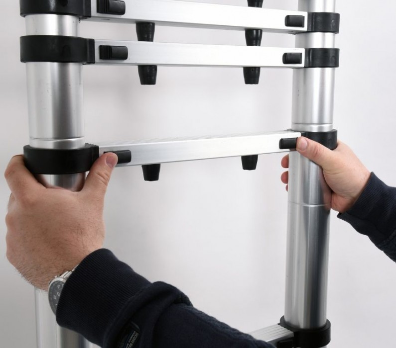 Hliníkový teleskopický žebřík je užitečný pro práci ve výškách, v domácnosti, na zahradě, na skladě, v dílně i na staveništi.