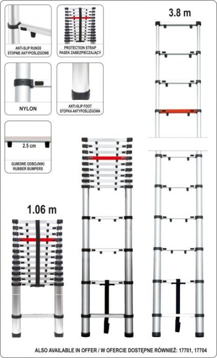 Popis: Žebřík teleskopický 13 stupňů 3,8 m, nosnost 150kg
