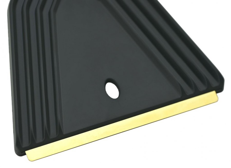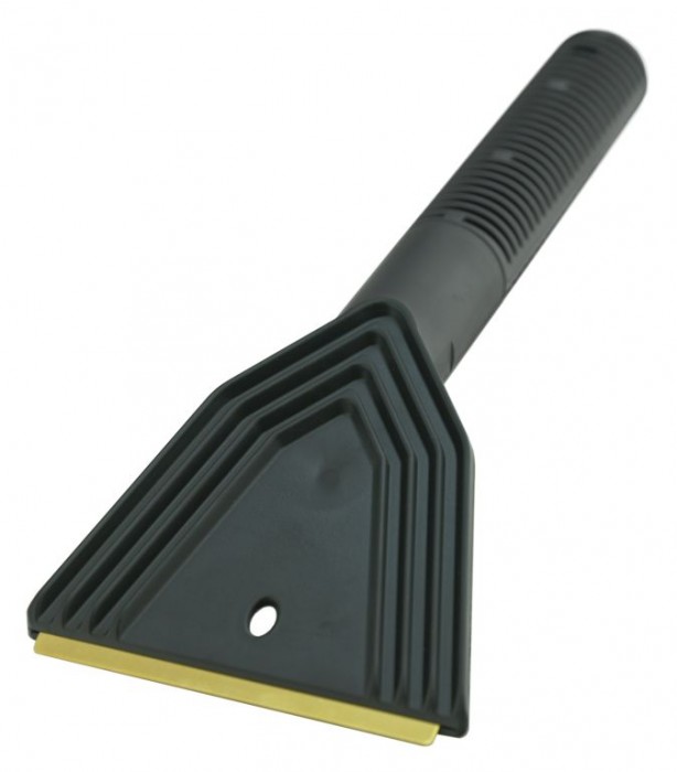Robustní škrabka s masivní plastovou konstrukcí a mosazným břitem je ideální pro efektivní odstranění námrazy, aniž by poškrábala sklo.