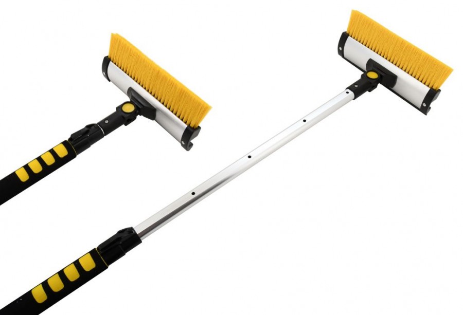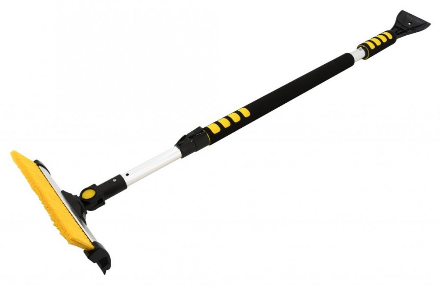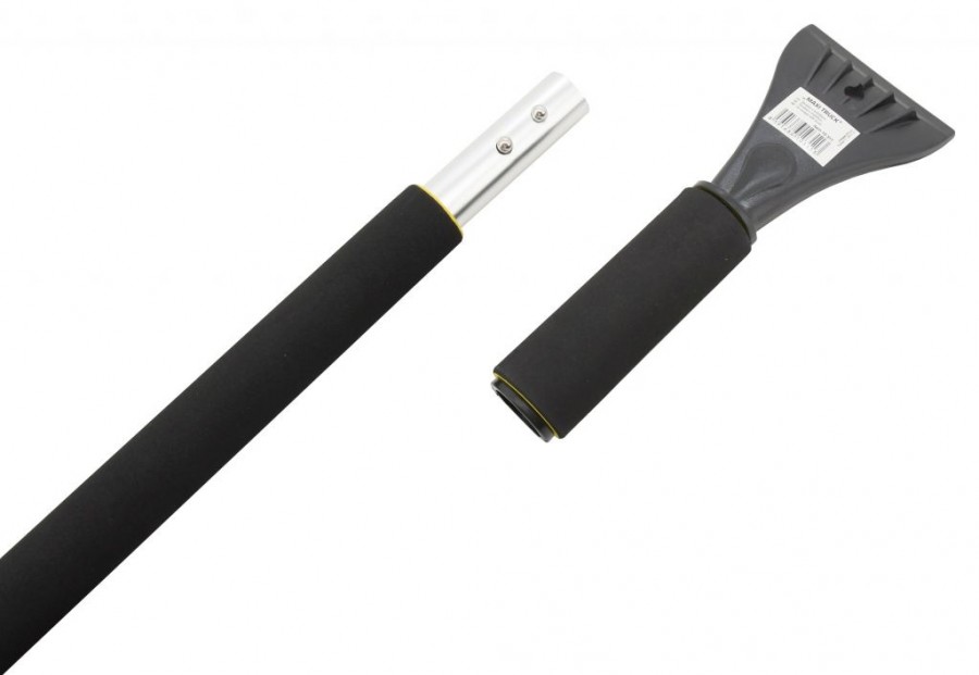 Robustní škrabka + stěrka + košťátko, ideální pro nákladní vozy a autobusy. Hliníková konstrukce, otočná stěrka s košťátkem, odnímatelná škrabka na led. Teleskopická rukojeť. Rukojeť potažena pěnovým krytem po celé délce.