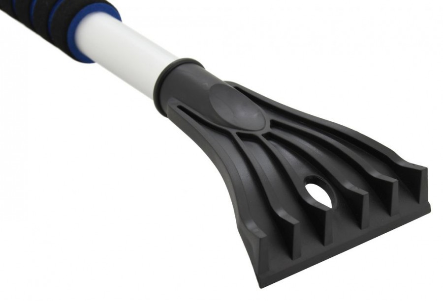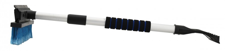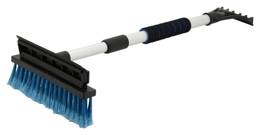 Škrabka s košťátkem teleskopická délky 60 - 90 cm. Jeden konec je opatřen košťátkem šíře 24 cm a gumovou stěrkou šíře 20 cm z druhé strany. Na druhém konci rukojeti se nachází 10 cm škrabka. Teleskopickou násadu lze po pootočení vysunout, nebo zasunout, po nastavení požadované délky je třeba otočit v opačném směru, pro zajištění. Hliníkové zhotovení rukojeti je opatřeno pěnovým madlem pro kvalitní a pohodlný úchop. Produkt je nabízen v kombinacích barev modré, žluté a červené s černou. Konkrétní barvu nebo druh výrobku není možné z technických důvodů zvolit, objednávce bude přidělena náhodná varianta dle skladových možností.