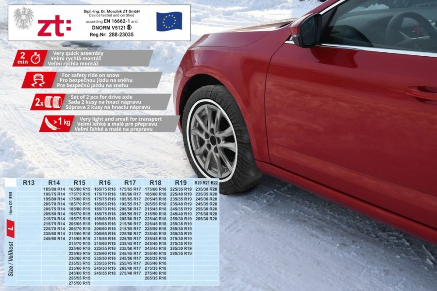 Popis: Sněhové řetězy textilní ADHESIV ÖNORM L