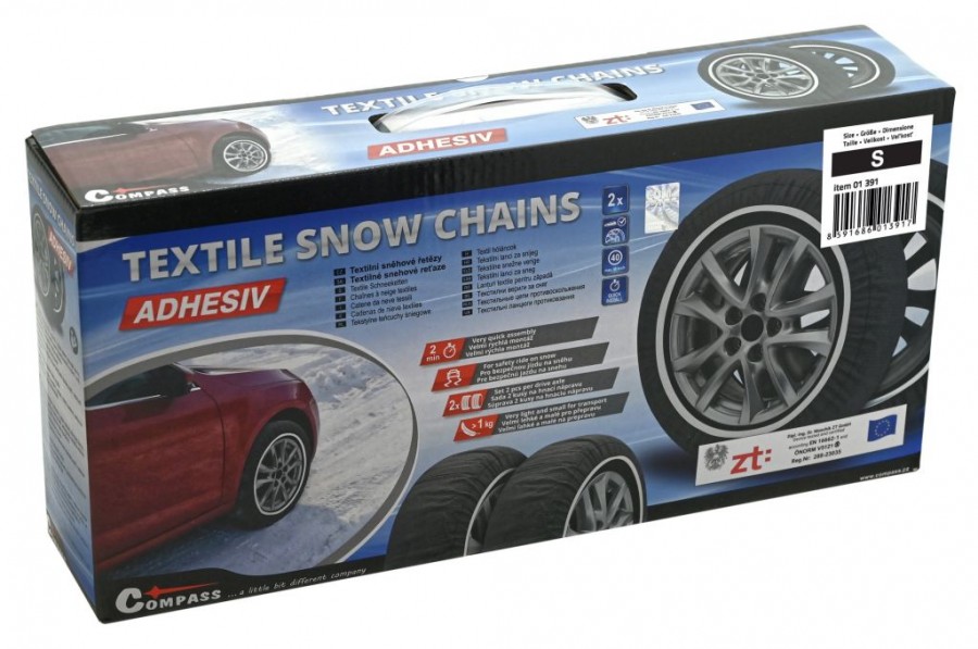 Řetězy jsou vyrobeny z vysoce odolné technické tkaniny a jsou vhodné pro veškeré osobní automobily, včetně vozů SUV a vozidla s pohonem 4x4. Díky hluboké struktuře povrchu je zajištěna bezpečná jízda na sněhu a na ledu. Vrchní strana je opatřena šipkou pro správný směr a orientaci na pneumatice. Řetězy jsou opětovně použitelné. Oproti běžným kovovým řetězům vynikají textilní řetězy svou nízkou hmotností i perfektní skladností a navíc nepotřebují žádnou zvláštní údržbu. Po použití stačí nečistoty opláchnout pomocí vlažné vody a nechat osušit. Díky svým malým rozměrům nebudou řetězy zabírat mnoho místa ve vozidle.
