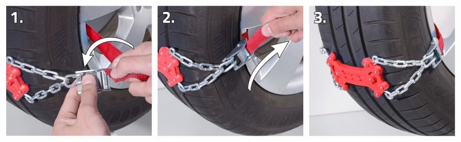 Univerzální vyprošťovací pásy proti sněhu a ledu jsou ideální pro nouzové vyproštění vozidla při sněhu, náledí nebo na blátě. Jsou vhodné pro všechny běžné rozměry pneumatik, a lze je použít jak na ocelové, tak i na ALU disky kol.