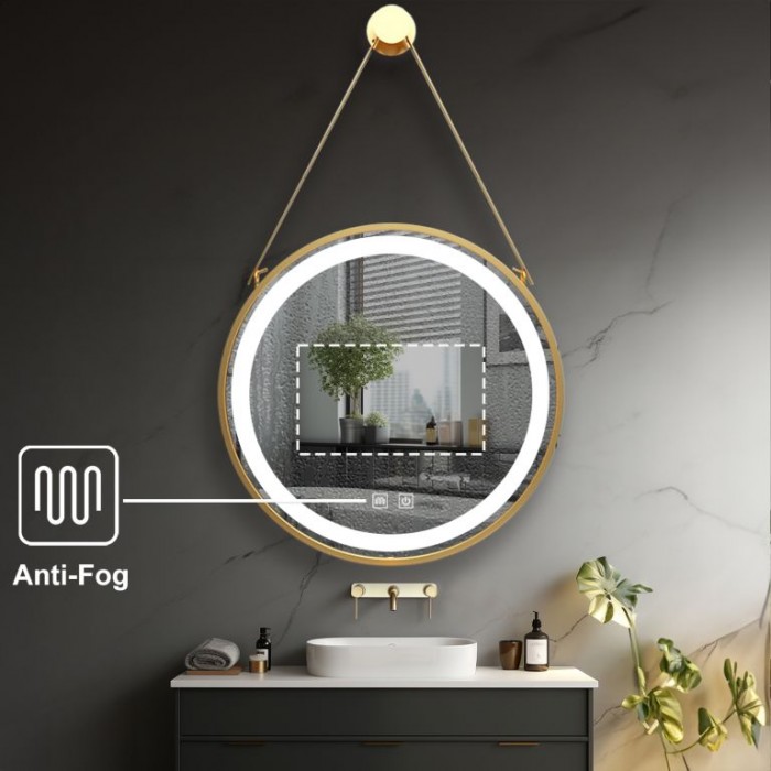 IREDA Koupelnové LED zrcadlo s osvětlením, zlatý rám, 80 cm